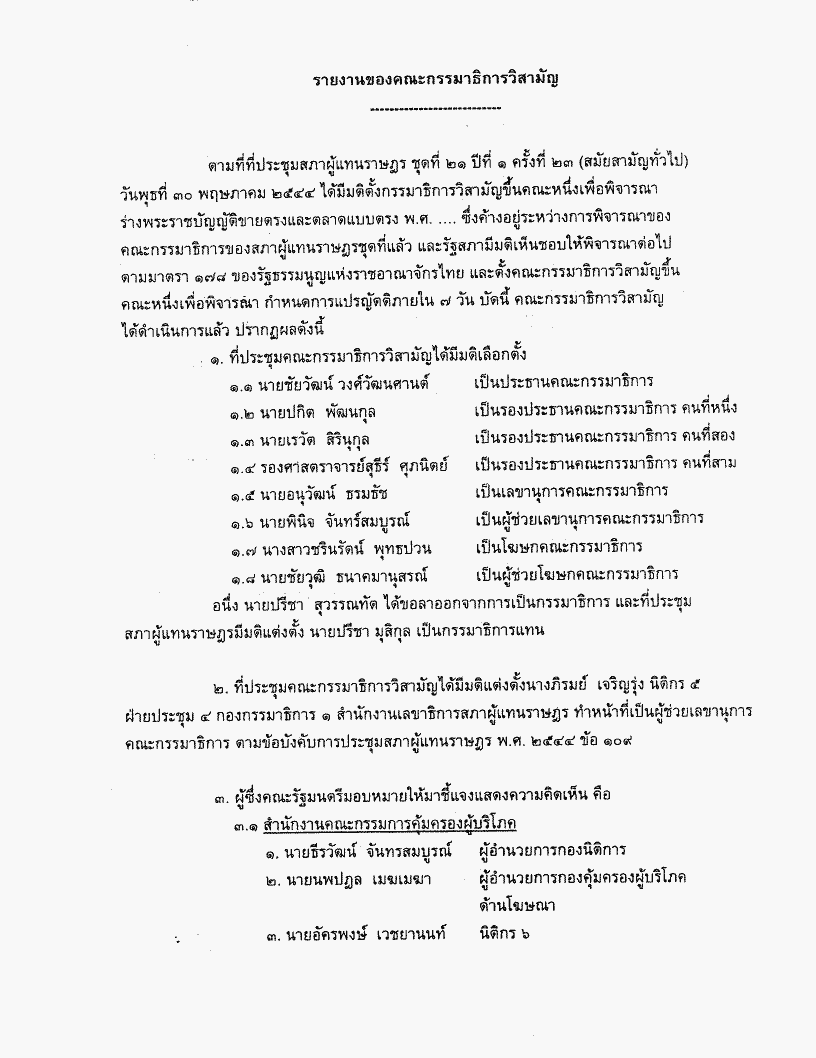 ชื่อเอกสาร :   ร่างพระราชบัญญัติขายตรงและตลาดแบบตรง พ.ศ..... ซึ่งคณะกรรมาธิการวิสามัญพิจารณาเสร็จแล้ว