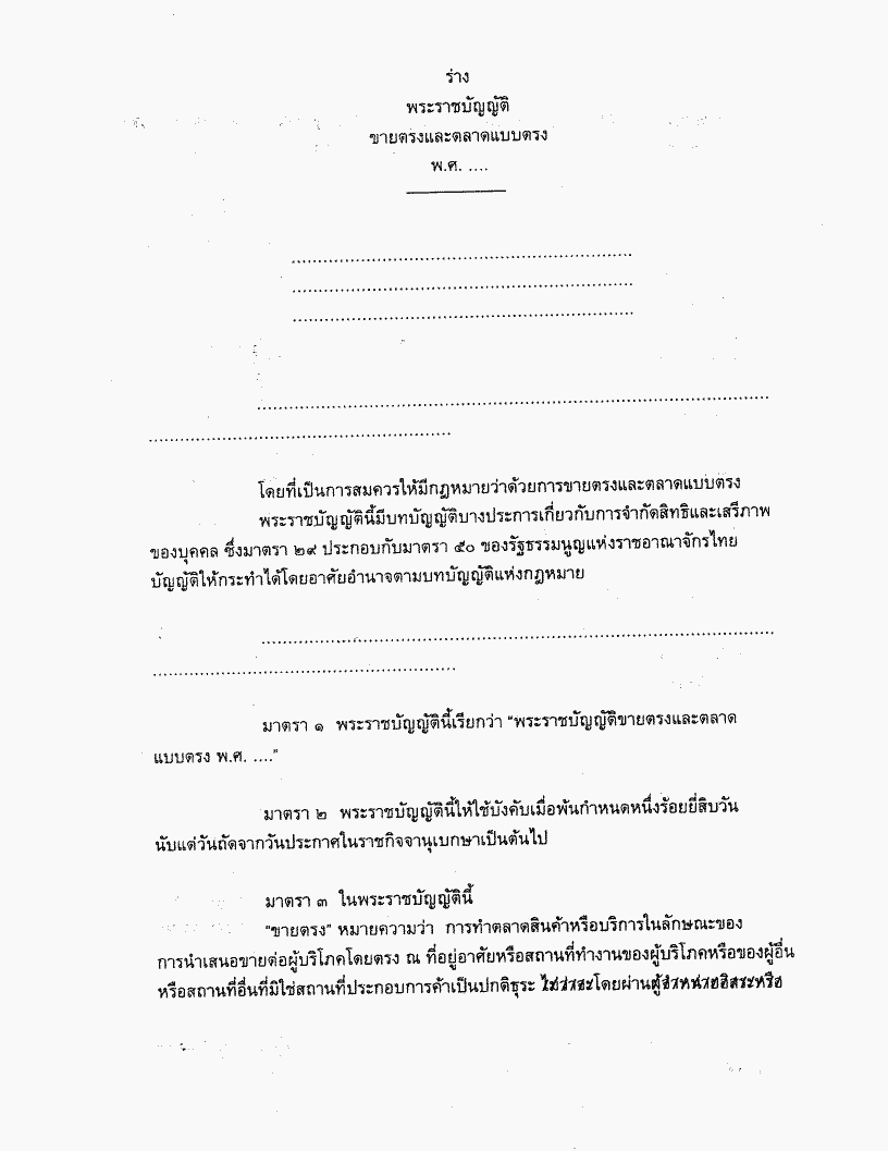 • ร่างพระราชบัญญัติขายตรงและตลาดแบบตรง พ.ศ.....
