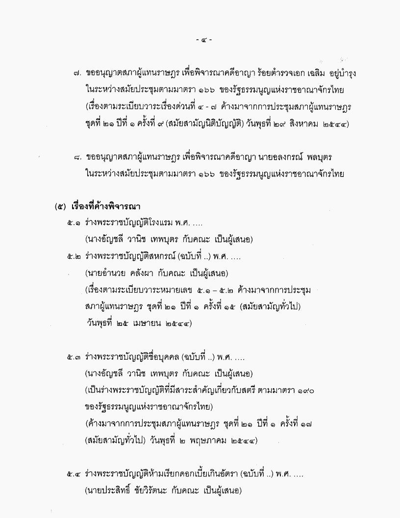 • ระเบียบวาระการประชุมสภาผู้แทนราษฎร ชุดที่ 21 ปีที่ 1 ครั้งที่ 20 (สมัยสามัญนิติบัญญัติ) วันพุธที่ 3 ตุลาคม 2544