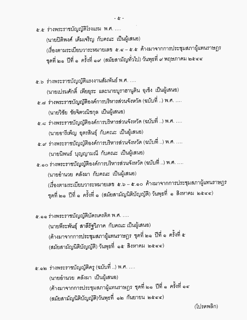 • ระเบียบวาระการประชุมสภาผู้แทนราษฎร ชุดที่ 21 ปีที่ 1 ครั้งที่ 20 (สมัยสามัญนิติบัญญัติ) วันพุธที่ 3 ตุลาคม 2544