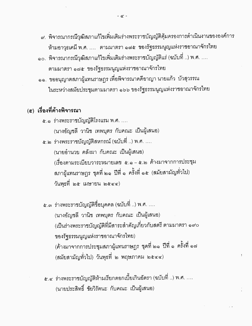 ชื่อเอกสาร : ระเบียบวาระการประชุมสภาผู้แทนราษฎร ชุดที่ 21 ปีที่ 1 ครั้งที่ 21 (สมัยสามัญนิติบัญญัติ) วันพุธที่ 10 ตุลาคม 2544