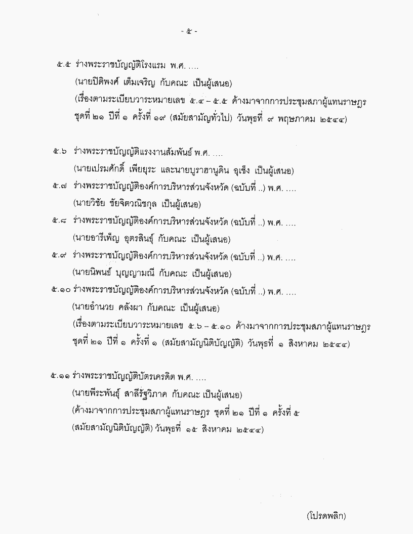 • ระเบียบวาระการประชุมสภาผู้แทนราษฎร ชุดที่ 21 ปีที่ 1 ครั้งที่ 21 (สมัยสามัญนิติบัญญัติ) วันพุธที่ 10 ตุลาคม 2544