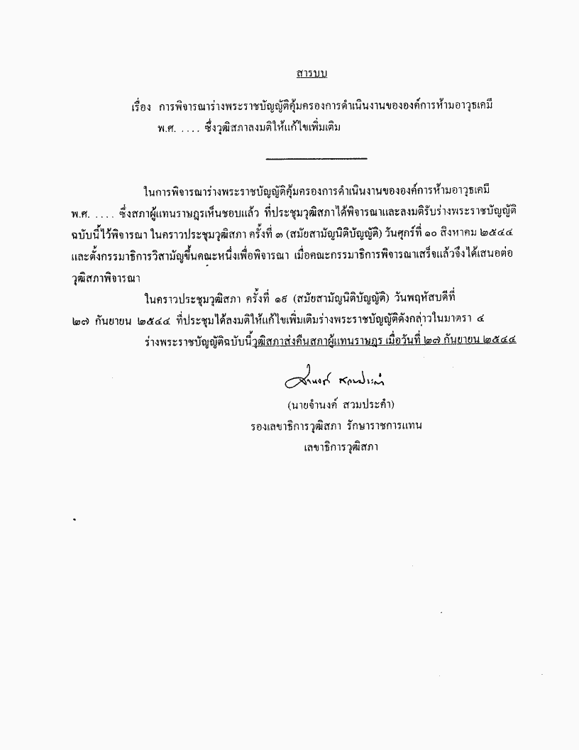 ร่างพระราชบัญญัติคุ้มครองการดำเนินงานขององค์การ ห้ามอาวุธเคมี พ.ศ. .... |