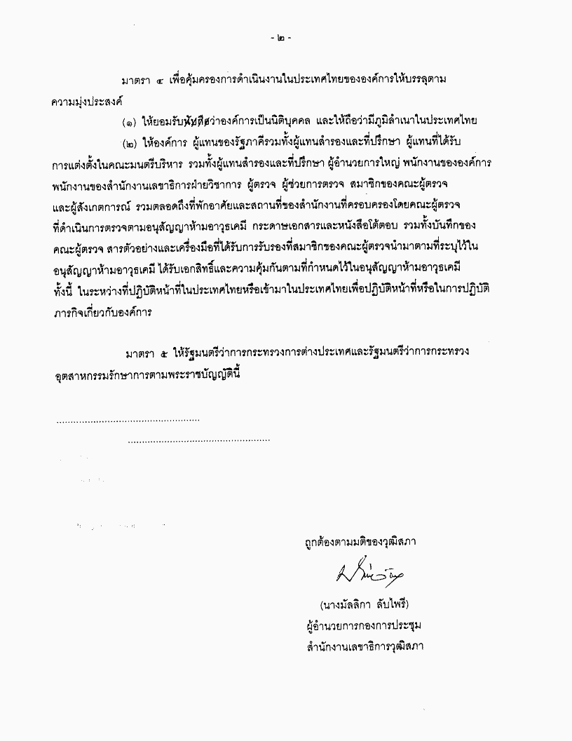 • ร่างพระราชบัญญัติคุ้มครองการดำเนินงานขององค์การ ห้ามอาวุธเคมี พ.ศ. ....