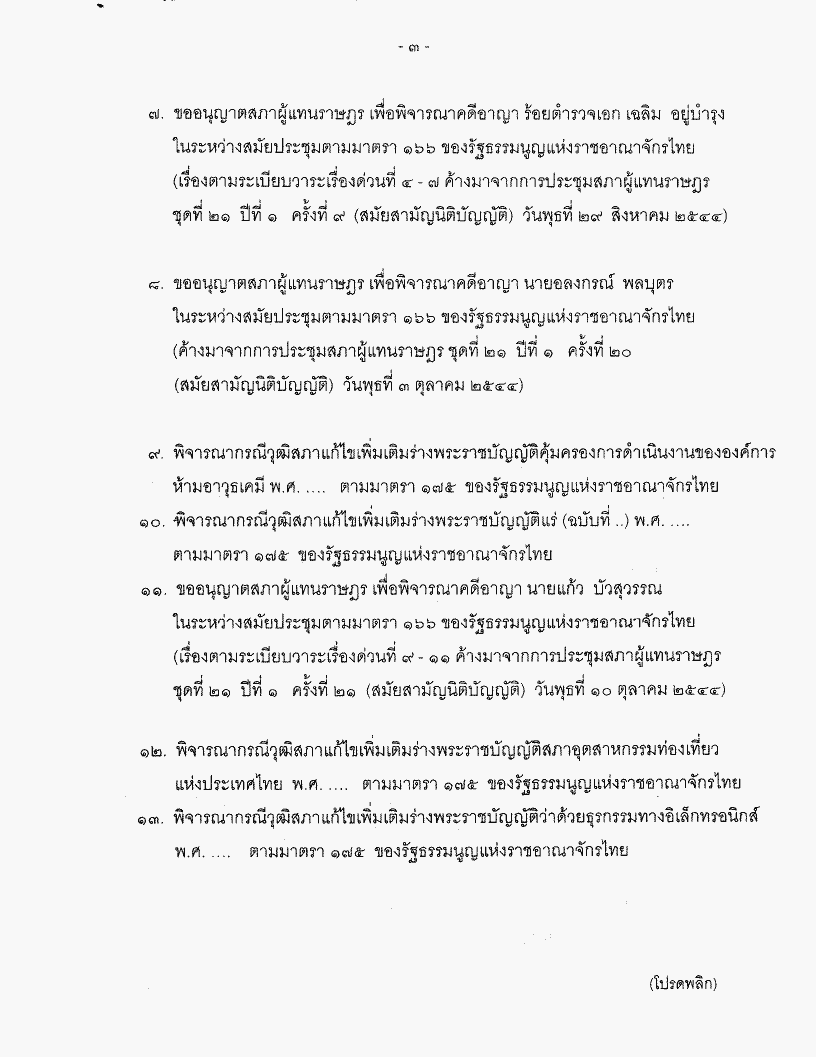 ระเบียบวาระการประชุมสภาผู้แทนราษฎร ชุดที่ 21 ปีที่ 1 ครั้งที่ 23 (สมัยสามัญนิติบัญญัติ) วันพุธที่ 17 ตุลาคม 2544 |