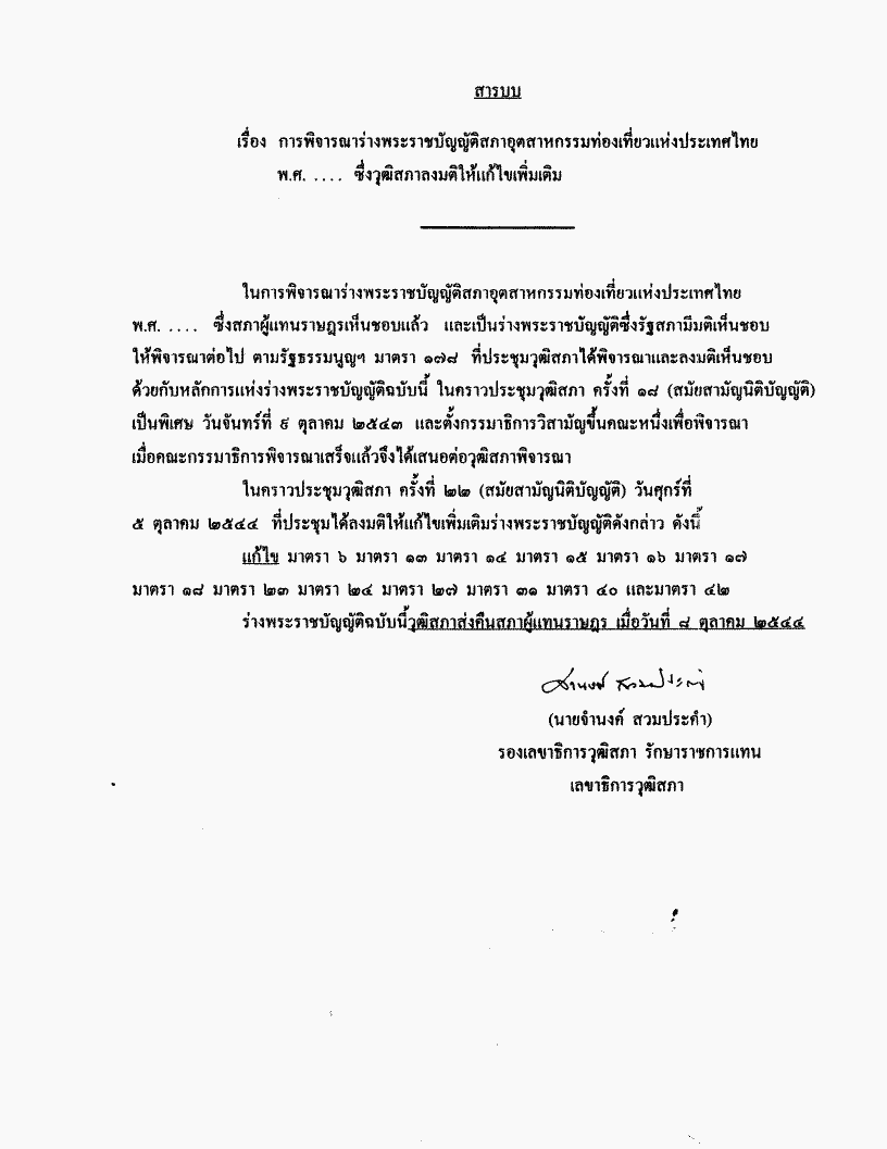 ร่างพระราชบัญญัติสภาอุตสาหกรรมท่องเที่ยวแห่งประเทศไทย พ.ศ. .... |