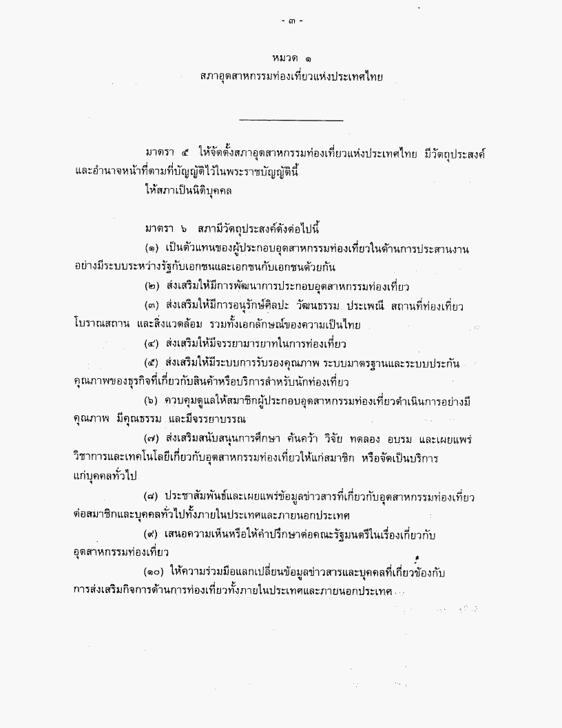 • ร่างพระราชบัญญัติสภาอุตสาหกรรมท่องเที่ยวแห่งประเทศไทย พ.ศ. ....