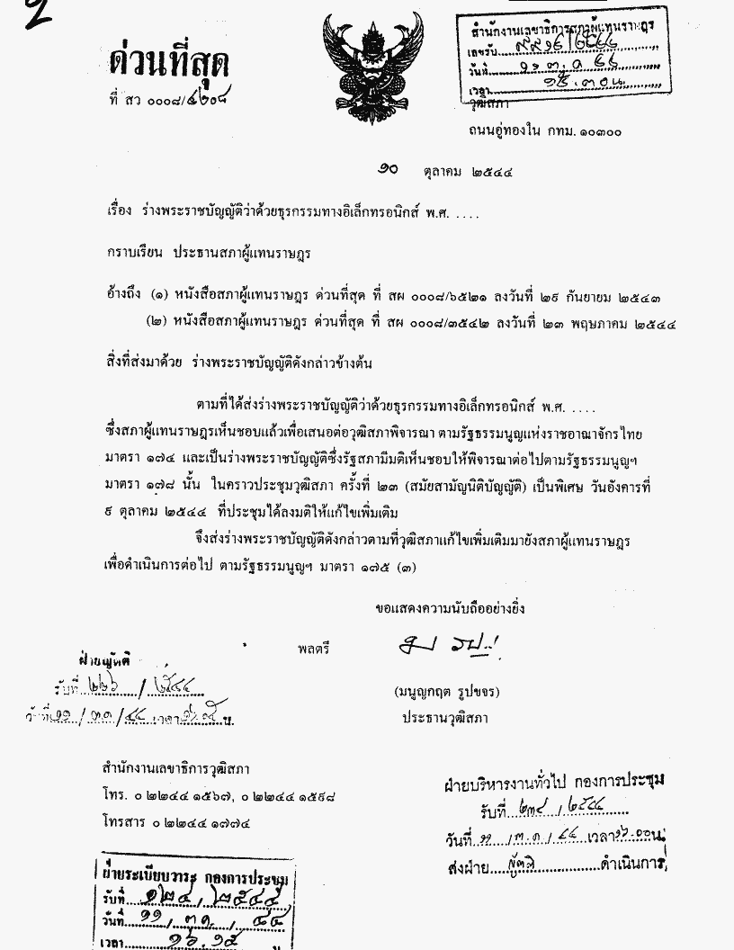 • ร่างพระราชบัญญัติว่าด้วยธุรกรรมทางอิเล็กทรอนิกส์พ.ศ. ...