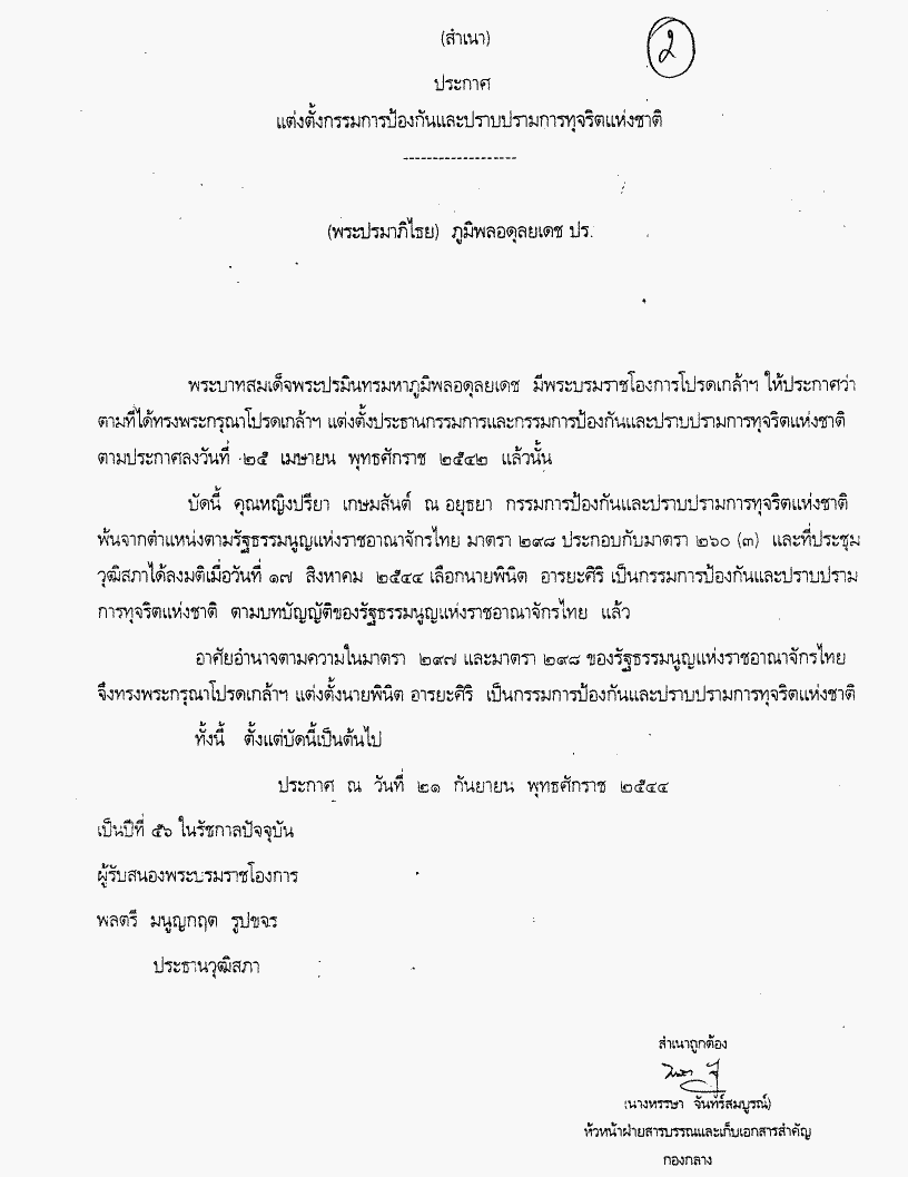 ประกาศ แต่งตั้งกรรมการป้องกันและปราบปรามการทุจริตแห่งชาติ |