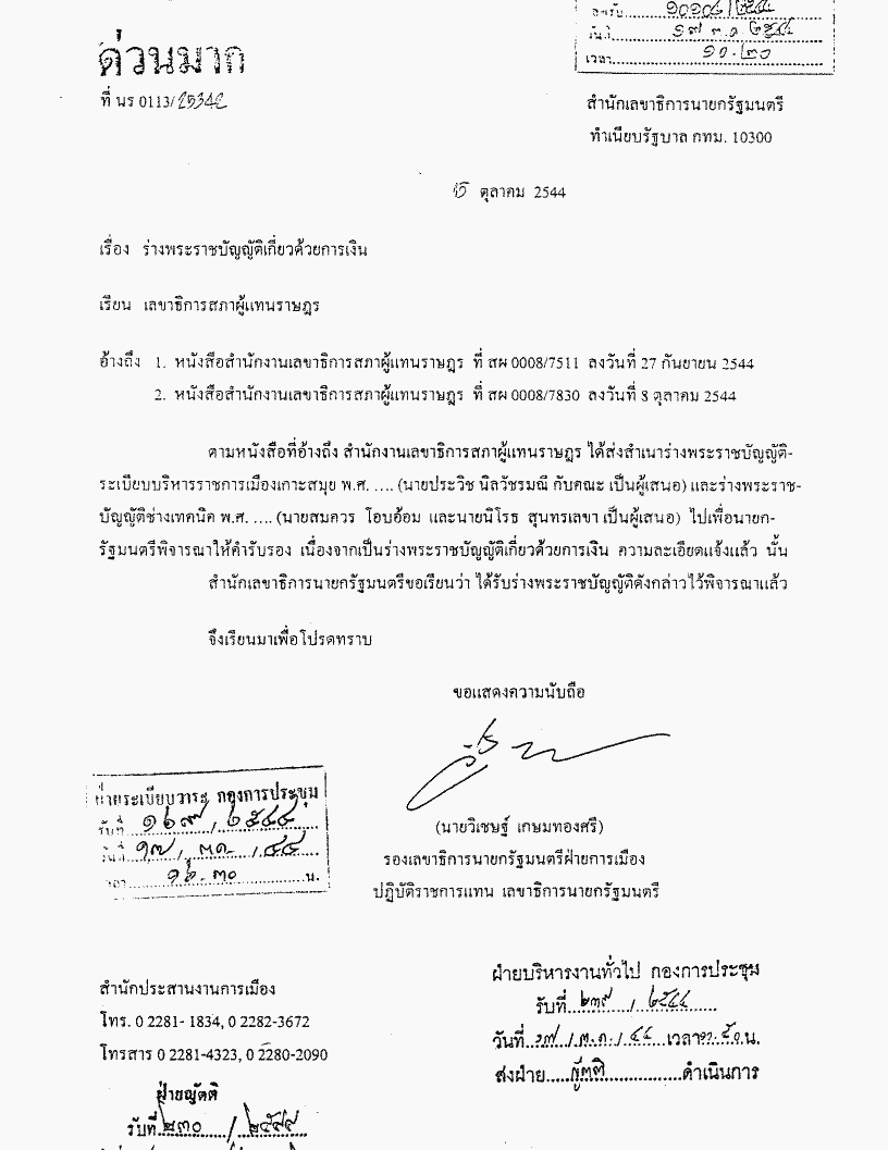 ร่างพระราชบัญญัติระเบียบบริหารราชการเมืองเกาะสมุย พ.ศ. ... (นายประวิช นิลวัชรมณี กับคณะ เป็นผู้เสนอ) |