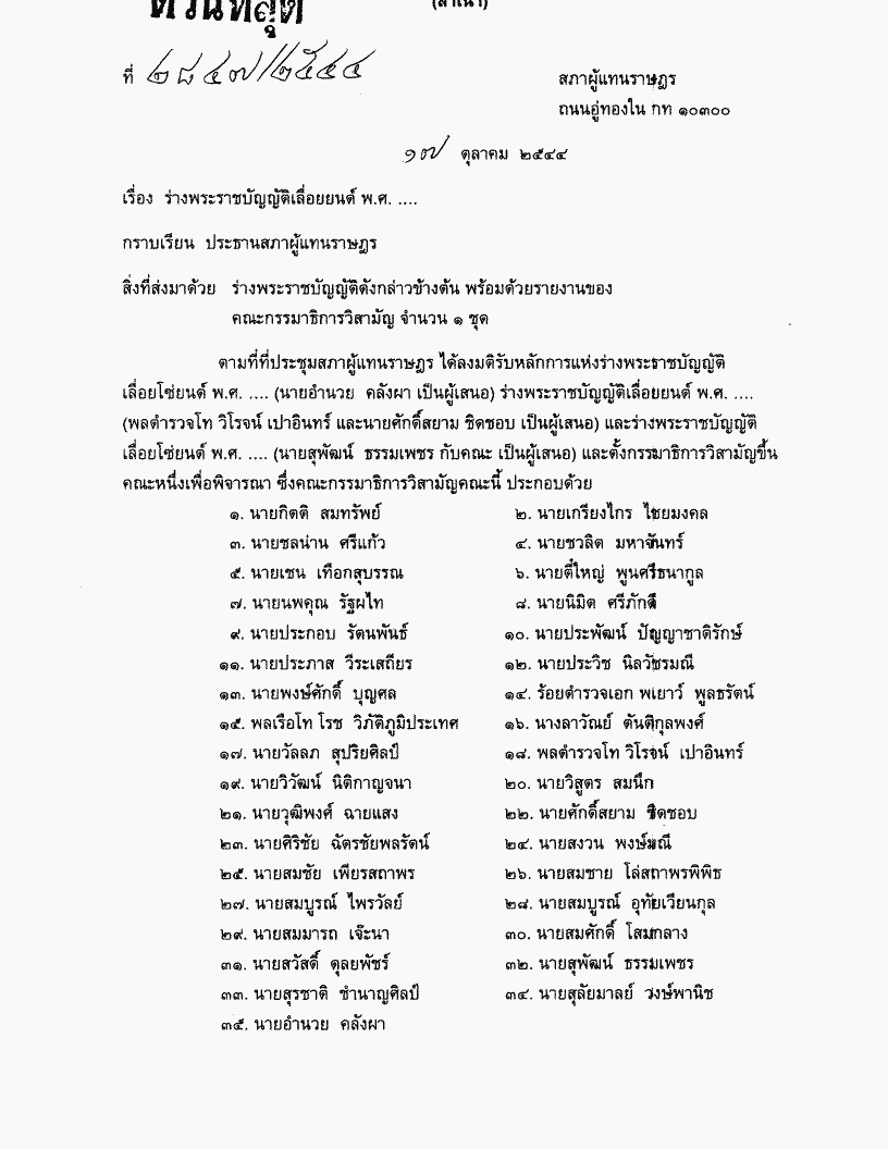 • ร่างพระราชบัญญัติเลื่อยยนต์ พ.ศ. ... ซึ่งคณะกรรมาธิการวิสามัญพิจารณาเสร็จแล้ว
