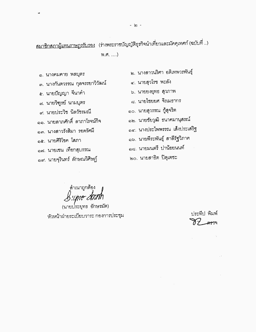 • ร่างพระราชบัญญัติธุรกิจนำเที่ยวและมัคคุเทศก์ (ฉบับที่..) พ.ศ. .... (นางอัญชลี วานิช เทพบุตร กับคณะ เป็นผู้เสนอ)