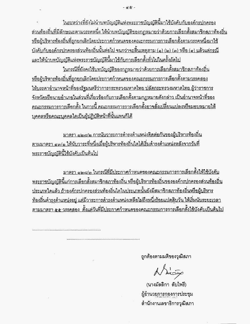 พิจารณากรณีวุฒิสภาแก้ไขเพิ่มเติมร่างพระราชบัญญัติการเลือกตั้งสมาชิกสภาท้องถิ่นหรือผู้บริหารท้องถิ่น พ.ศ. .... ตามมาตรา 175 ของรัฐธรรมนูญแห่งราชอาณาจักรไทย
