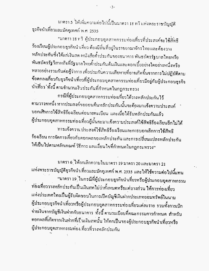 ชื่อเอกสาร :   ร่างพระราชบัญญัติธุรกิจนำเที่ยวและมัคคุเทศก์ (ฉบับที่..) พ.ศ. .... (นางอัญชลี วานิช เทพบุตร กับคณะ เป็นผู้เสนอ)