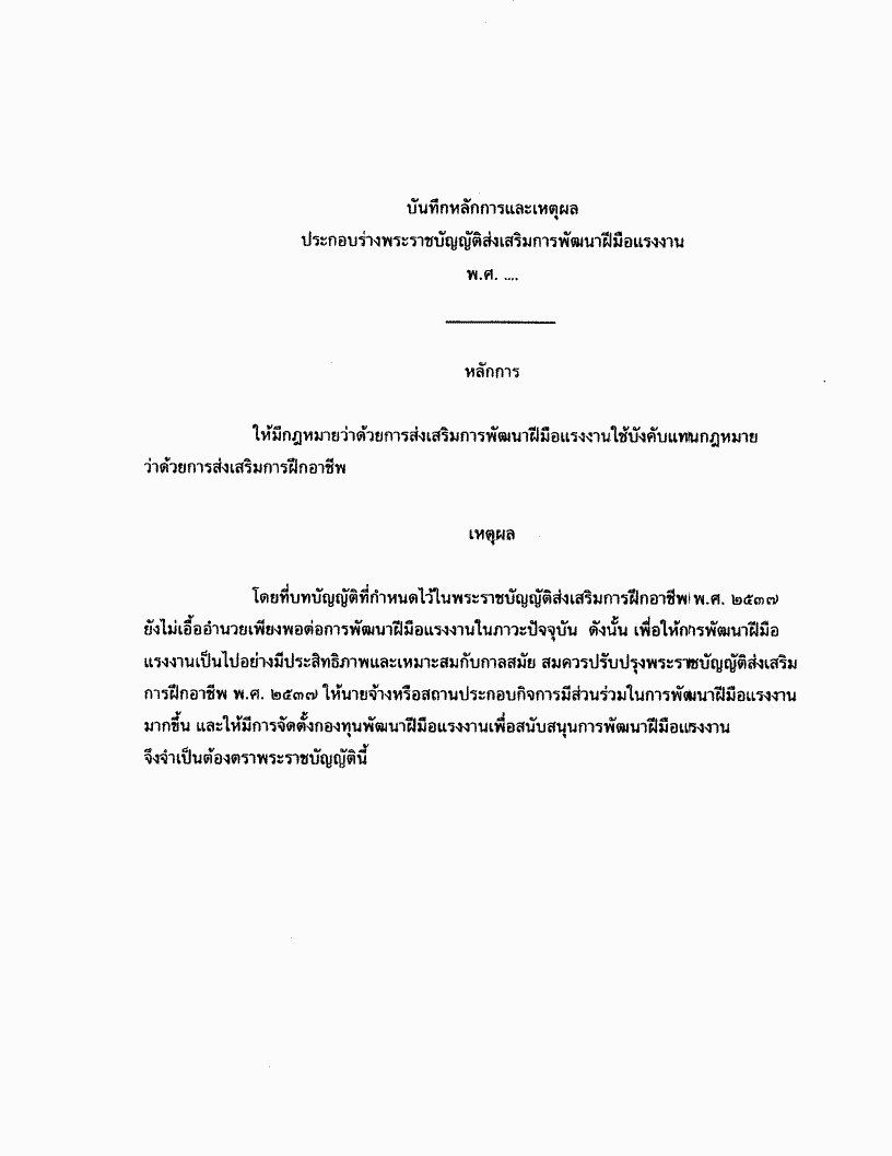 ชื่อเอกสาร :   ร่างพระราชบัญญัติส่งเสริมการพัฒนาฝีมือแรงงาน พ.ศ. .... (คณะรัฐมนตรี เป็นผู้เสนอ)
