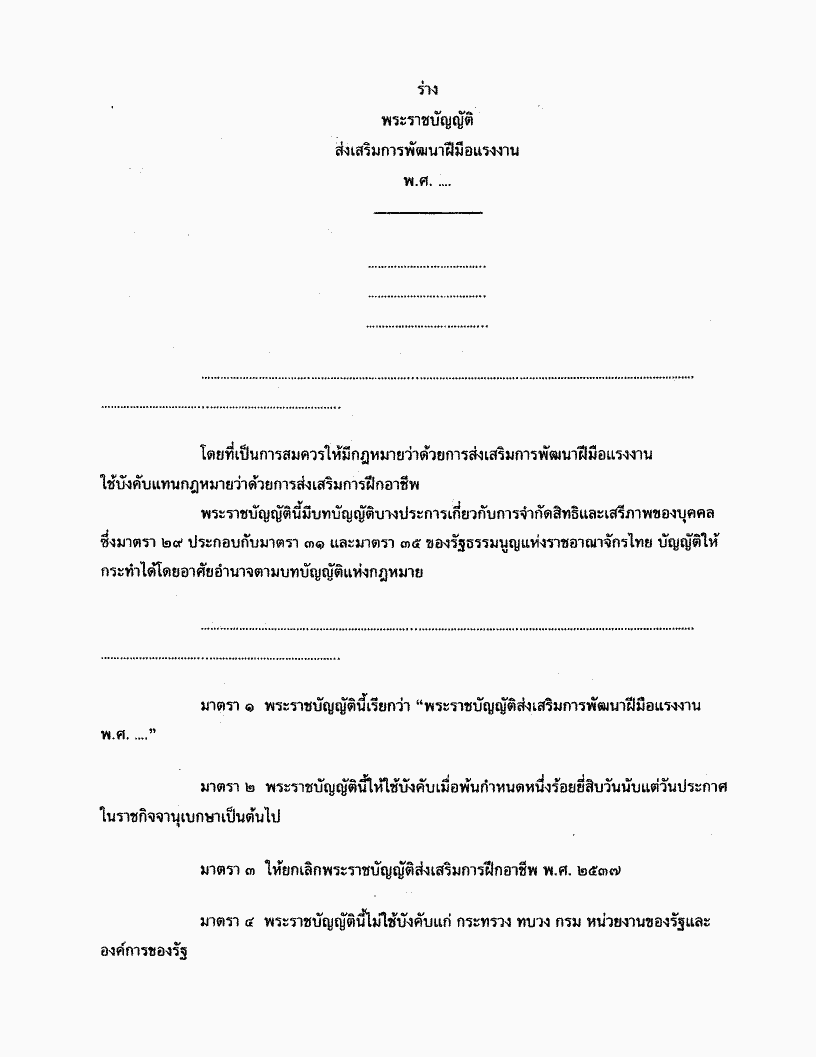 • ร่างพระราชบัญญัติส่งเสริมการพัฒนาฝีมือแรงงาน พ.ศ. ....