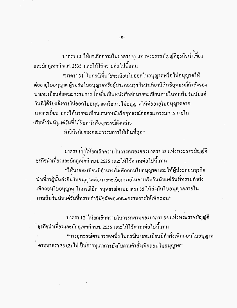 ชื่อเอกสาร :   ร่างพระราชบัญญัติธุรกิจนำเที่ยวและมัคคุเทศก์ (ฉบับที่..) พ.ศ. .... (นางอัญชลี วานิช เทพบุตร กับคณะ เป็นผู้เสนอ)