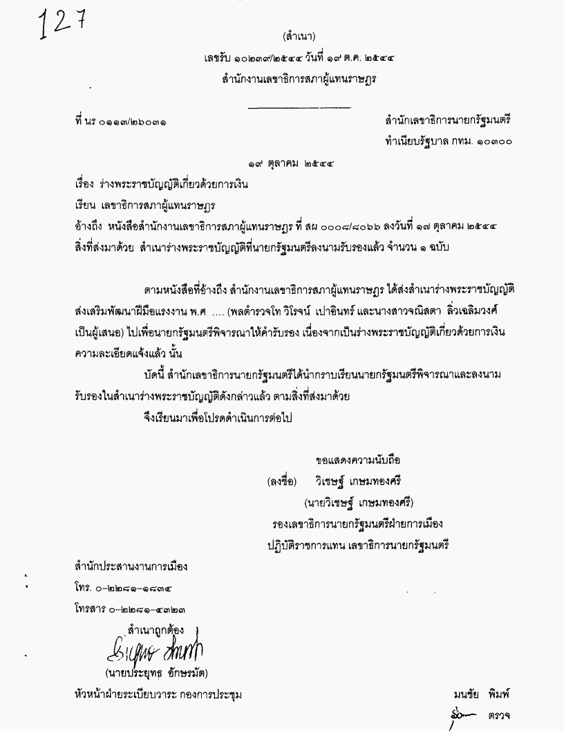 • ร่างพระราชบัญญัติเกี่ยวด้วยการเงิน