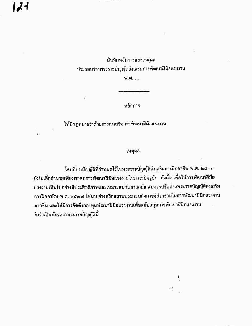 ชื่อเอกสาร :   ร่างพระราชบัญญัติส่งเสริมการพัฒนาฝีมือแรงงาน พ.ศ. .... (พลตำรวจโท วิโรจน์ เปาอินทร์ และนางสาวจณิสตา ลิ่วเฉลิมวงศ์ เป็นผู้เสนอ)