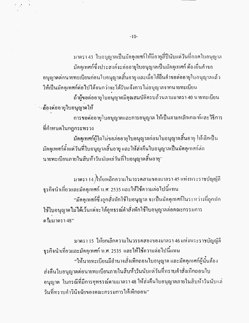 ชื่อเอกสาร :   ร่างพระราชบัญญัติธุรกิจนำเที่ยวและมัคคุเทศก์ (ฉบับที่..) พ.ศ. .... (นางอัญชลี วานิช เทพบุตร กับคณะ เป็นผู้เสนอ)