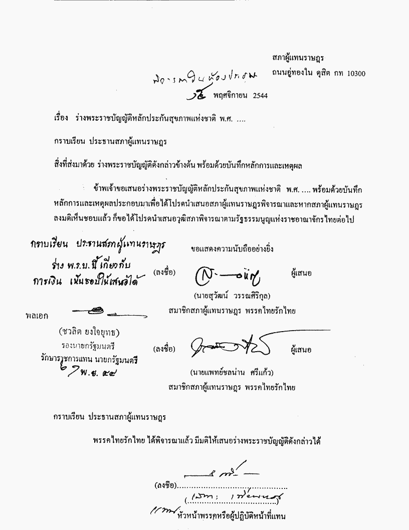 • ร่างพระราชบัญญัติหลักประกันสุขภาพแห่งชาติ พ.ศ..... (คณะรัฐมนตรี เป็นผู้เสนอ)