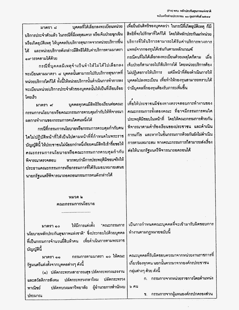 • ร่างพระราชบัญญัติหลักประกันสุขภาพแห่งชาติ พ.ศ.....