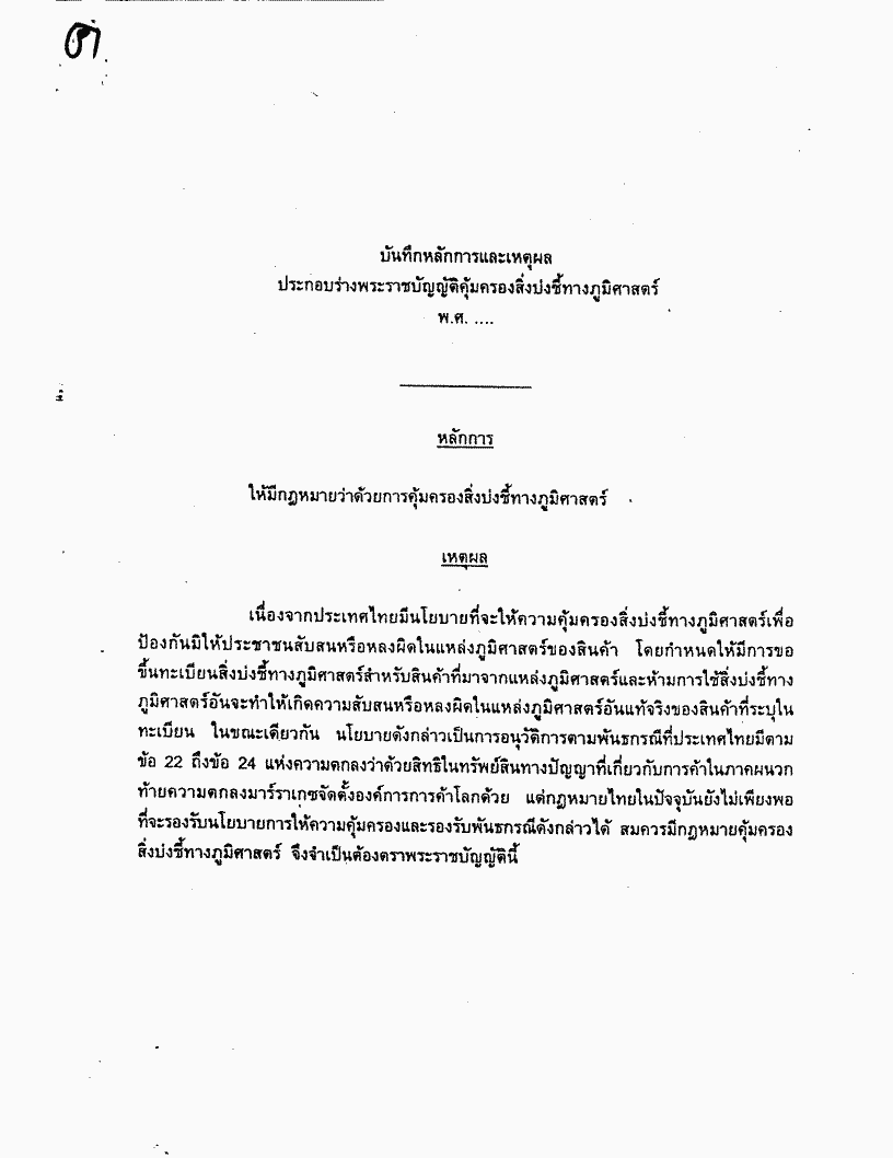 ชื่อเอกสาร :   ร่างพระราชบัญญัติคุ้มครองสิ่งบ่งชี้ทางภูมิศาสตร์ พ.ศ.... (คณะรัฐมนตรี เป็นผู้เสนอ)
