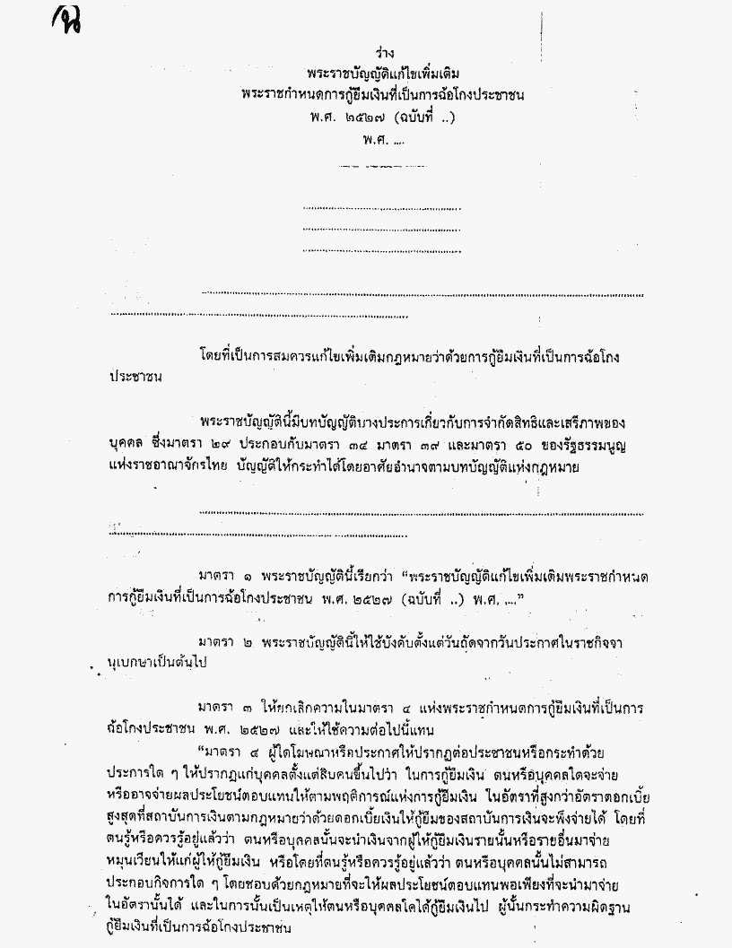 • ร่างพระราชบัญญัติแก้ไขเพิ่มเติมพระราชกำหนดการกู้ยืมเงินที่เป็นการฉ้อโกงประชาชน พ.ศ. 2527 (ฉบับที่..) พ.ศ.....