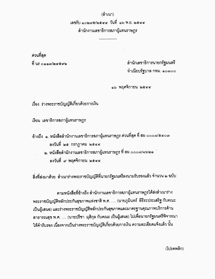 ชื่อเอกสาร :   ร่างพระราชบัญญัติหลักประกันสุขภาพแห่งชาติ พ.ศ..... (นายภูมินทร์ ลีธีระประเสริฐ กับคณะ เป็นผู้เสนอ)