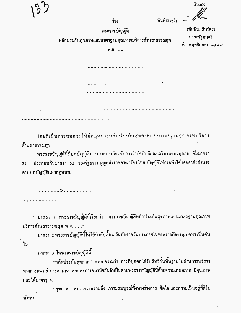 ชื่อเอกสาร :   ร่างพระราชบัญญัติหลักประกันสุขภาพและมาตรฐานคุณภาพบริการด้านสาธารณสุข พ.ศ..... (นายปรีชา มุสิกุล กับคณะ เป็นผู้เสนอ)