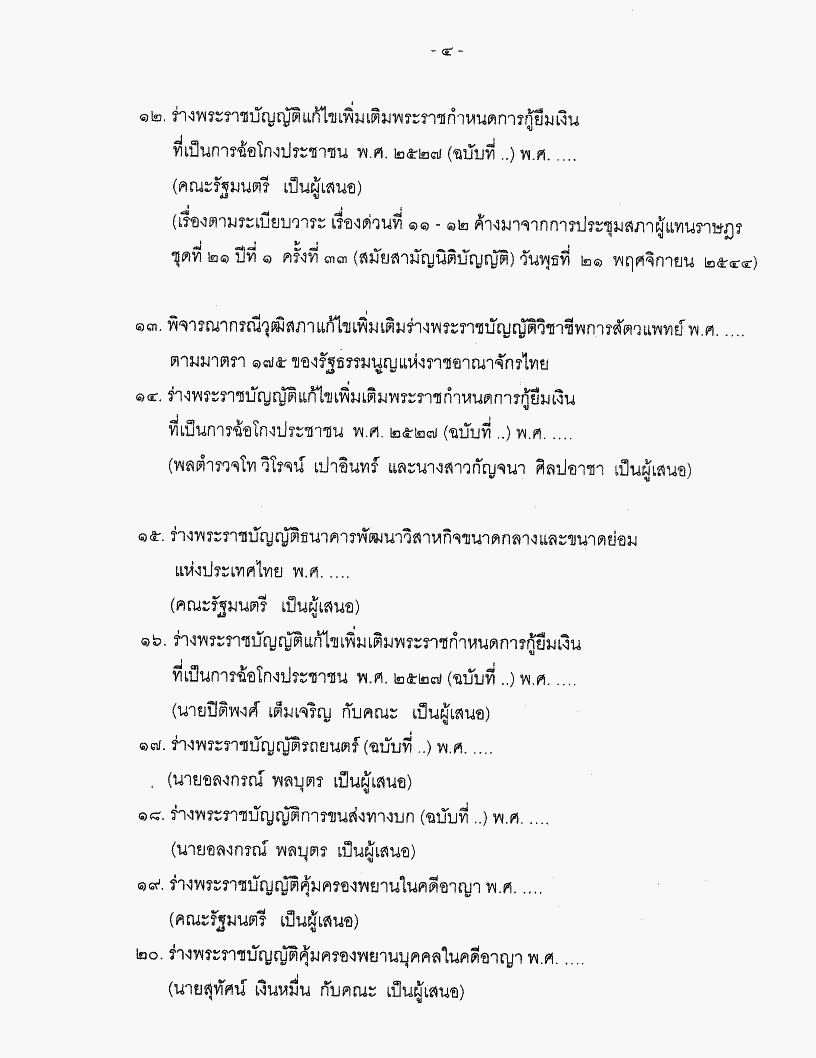ชื่อเอกสาร : ระเบียบวาระการประชุมสภาผู้แทนราษฎร ชุดที่ 21 ปีที่ 1 ครั้งที่ 35 (สมัยสามัญนิติบัญญัติ) วันพุธที่ 28 พฤศจิกายน 2544
