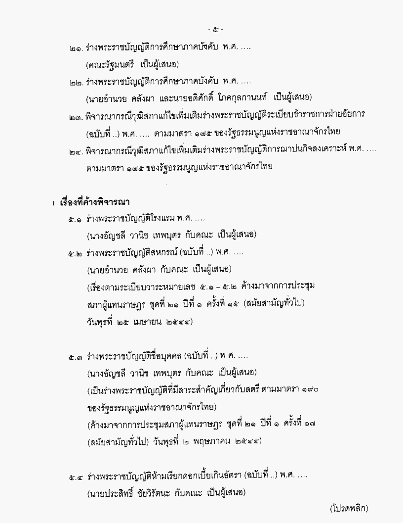 • ระเบียบวาระการประชุมสภาผู้แทนราษฎร ชุดที่ 21 ปีที่ 1 ครั้งที่ 35 (สมัยสามัญนิติบัญญัติ) วันพุธที่ 28 พฤศจิกายน 2544