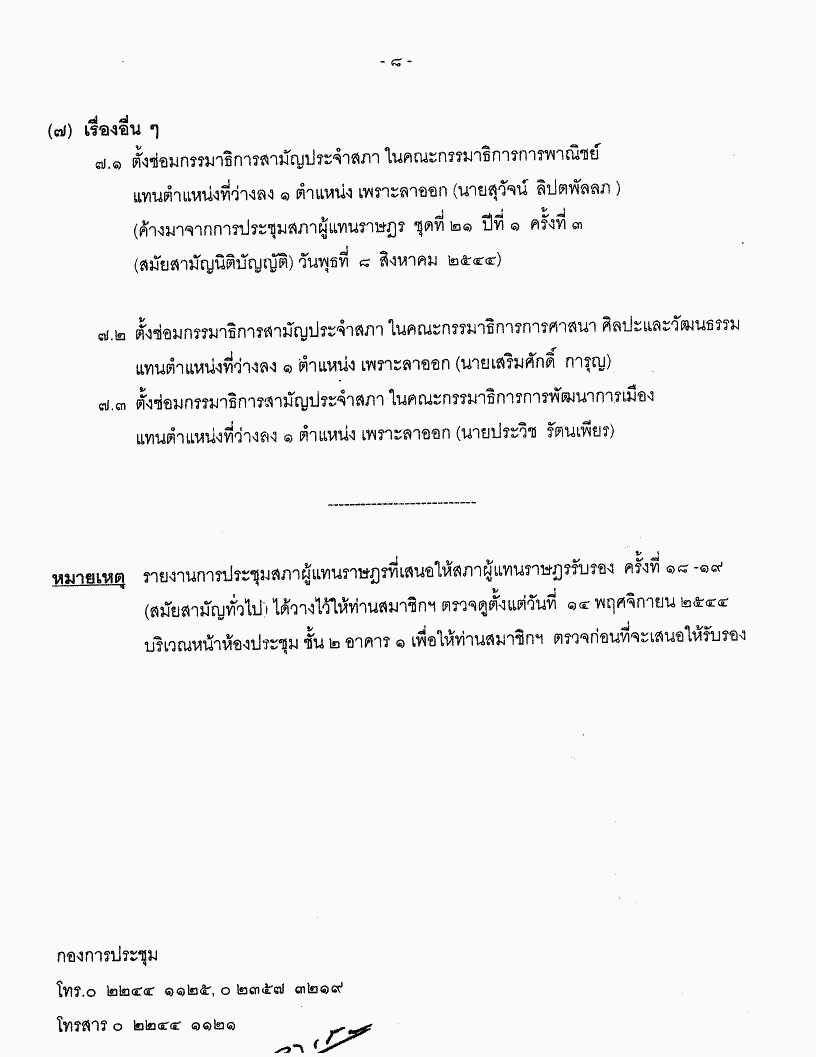 • ระเบียบวาระการประชุมสภาผู้แทนราษฎร ชุดที่ 21 ปีที่ 1 ครั้งที่ 35 (สมัยสามัญนิติบัญญัติ) วันพุธที่ 28 พฤศจิกายน 2544