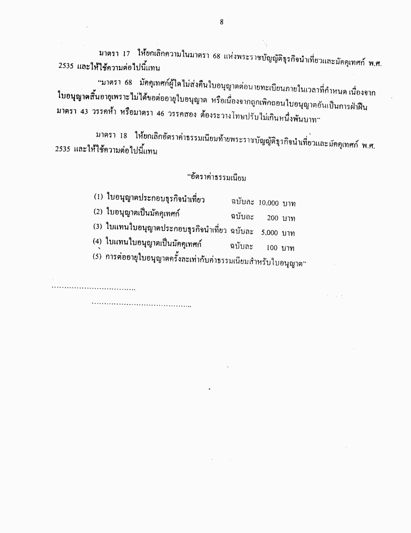 • ร่างพระราชบัญญัติธุรกิจนำเที่ยวและมัคคุเทศก์ (ฉบับที่..) พ.ศ. ....