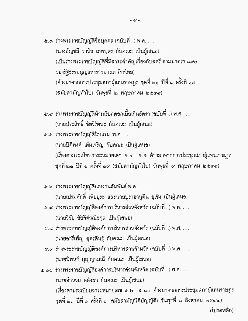 • ระเบียบวาระการประชุมสภาผู้แทนราษฎร ชุดที่ 21 ปีที่ 1 ครั้งที่ 35 (สมัยสามัญนิติบัญญัติ) วันพุธที่ 28 พฤศจิกายน 2544