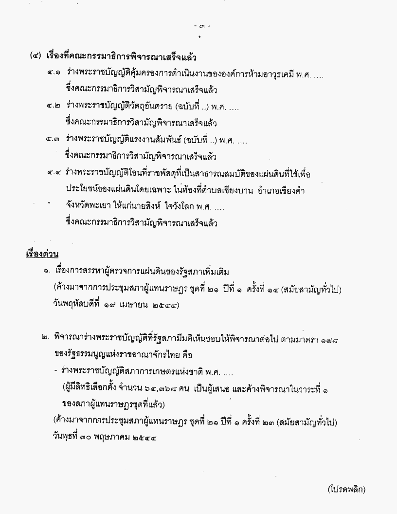 • ระเบียบวาระการประชุมสภาผู้แทนราษฎร ชุดที่ 21 ปีที่ 1 ครั้งที่ 1 (สมัยสามัญนิติบัญญัติ) วันพุธที่ 1 สิงหาคม 2544