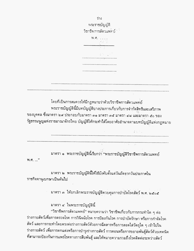 • ร่างพระราชบัญญัติวิชาชีพการสัตวแพทย์ พ.ศ....