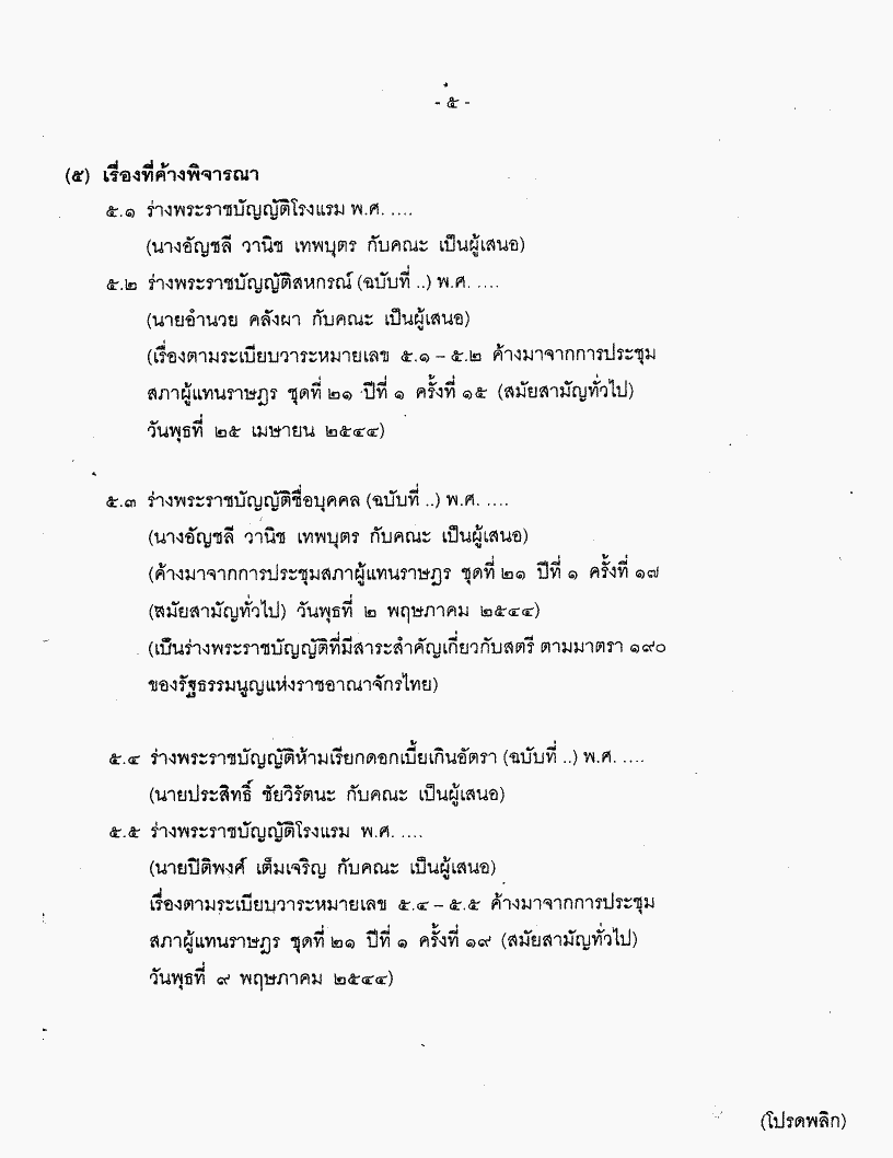 • ระเบียบวาระการประชุมสภาผู้แทนราษฎร > ชุดที่ 21 > ปีที่ 1 > สมัยสามัญนิติบัญญัติ > ครั้งที่ 1