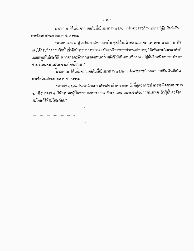 ชื่อเอกสาร :   ร่างพระราชบัญญัติแก้ไขเพิ่มเติมพระราชกำหนดการกู้ยืมเงินที่เป็นการฉ้อโกงประชาชน พ.ศ. 2527 (ฉบับที่..) พ.ศ..... (พลตำรวจโท วิโรจน์ เปาอินทร์ และนางสาวกัญจนา ศิลปอาชา เป็นผู้เสนอ)