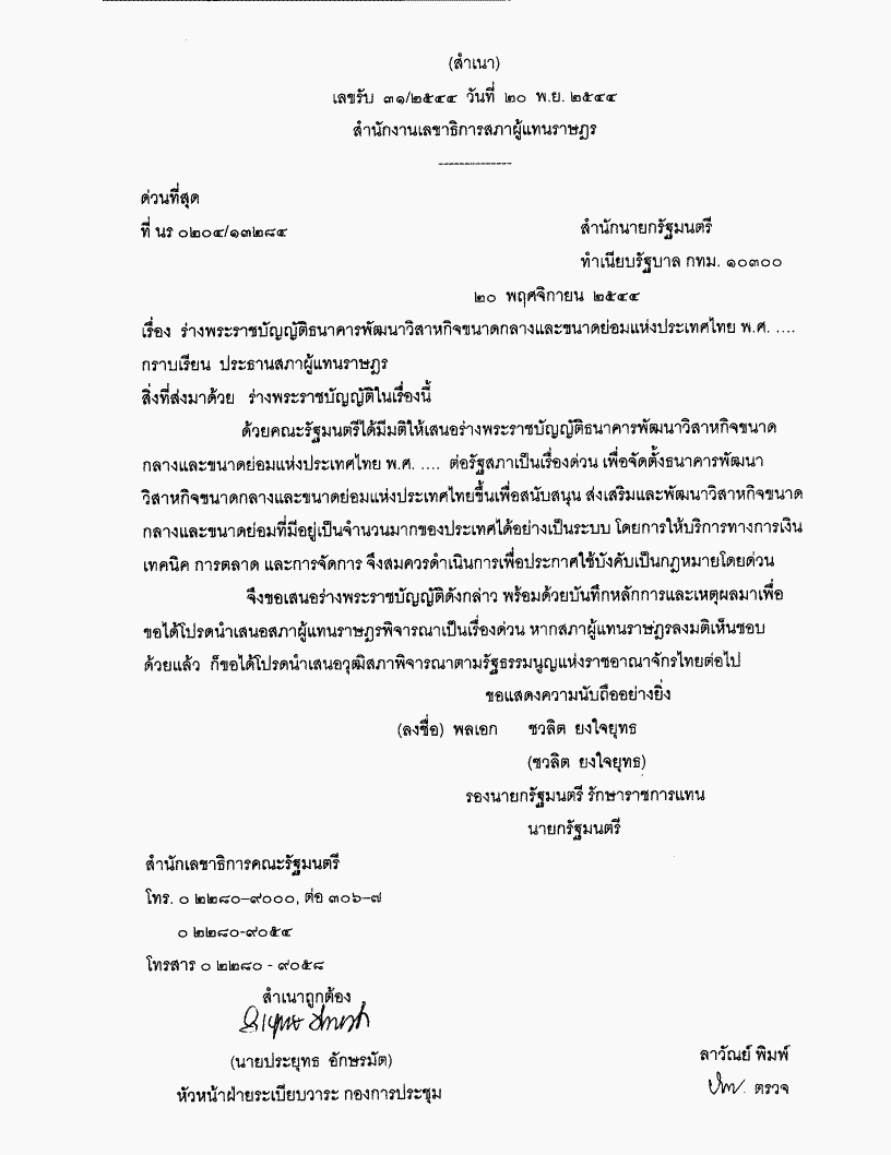 ร่างพระราชบัญญัติธนาคารพัฒนาวิสาหกิจขนาดกลางและขนาดย่อมแห่งประเทศไทย พ.ศ..... |