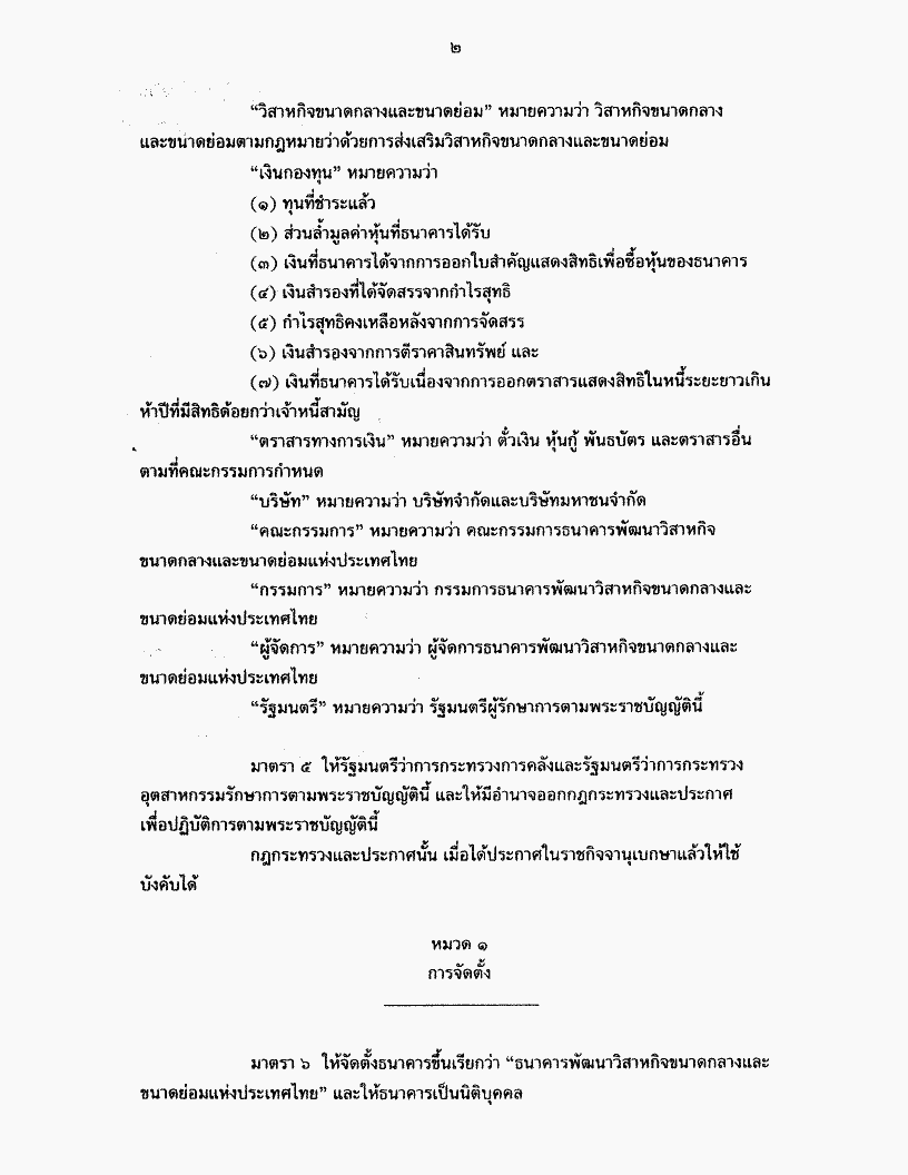 ชื่อเอกสาร :   ร่างพระราชบัญญัติธนาคารพัฒนาวิสาหกิจขนาดกลางและขนาดย่อมแห่งประเทศไทย พ.ศ..... (คณะรัฐมนตรี เป็นผู้เสนอ)
