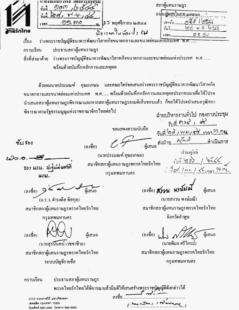 • ร่างพระราชบัญญัติธนาคารพัฒนาวิสาหกิจขนาดกลางและขนาดย่อมแห่งประเทศ พ.ศ....