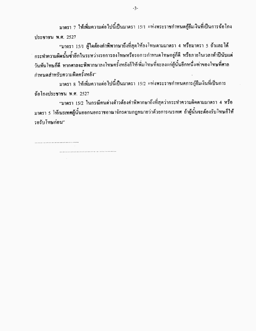 ชื่อเอกสาร :   ร่างพระราชบัญญัติแก้ไขเพิ่มเติมพระราชกำหนดการกู้ยืมเงินที่เป็นการฉ้อโกงประชาชน พ.ศ. 2527 (ฉบับที่ ..) พ.ศ..... (นายปิติพงศ์ เต็มเจริญ กับคณะ เป็นผู้เสนอ)