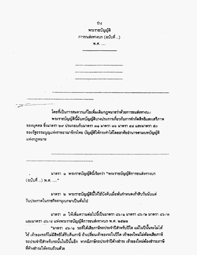 • ร่างพระราชบัญญัติการขนส่งทางบก (ฉบับที่..) พ.ศ.....