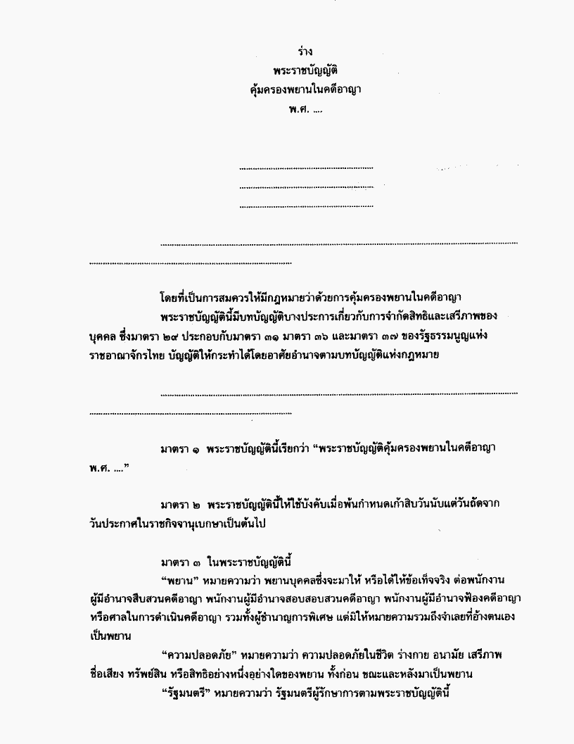 • ร่างพระราชบัญญัติคุ้มครองพยานบุคคลในคดีอาญา พ..ศ. ....