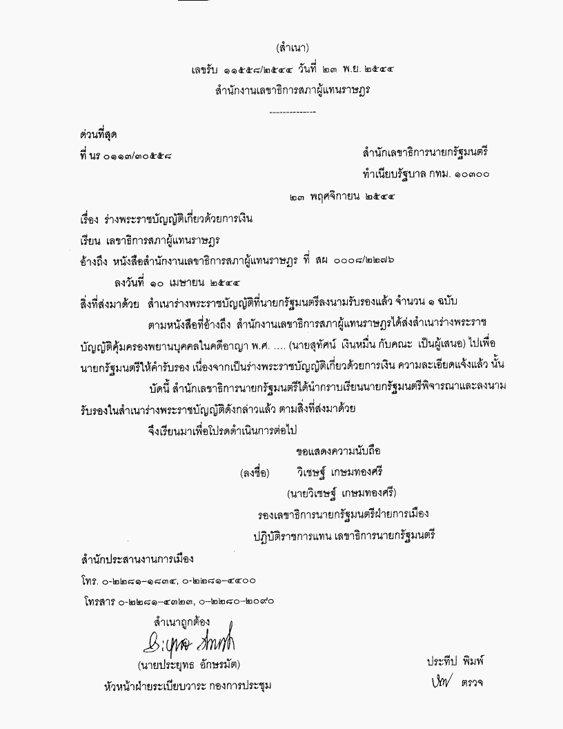 • ร่างพระราชบัญญัติเกี่ยวด้วยการเงิน