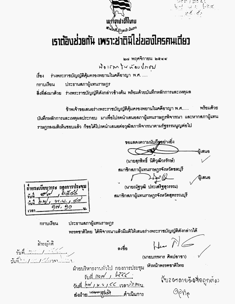 • ร่างพระราชบัญญัติคุ้มครองพยานบุคคลในคดีอาญา พ.ศ.....
