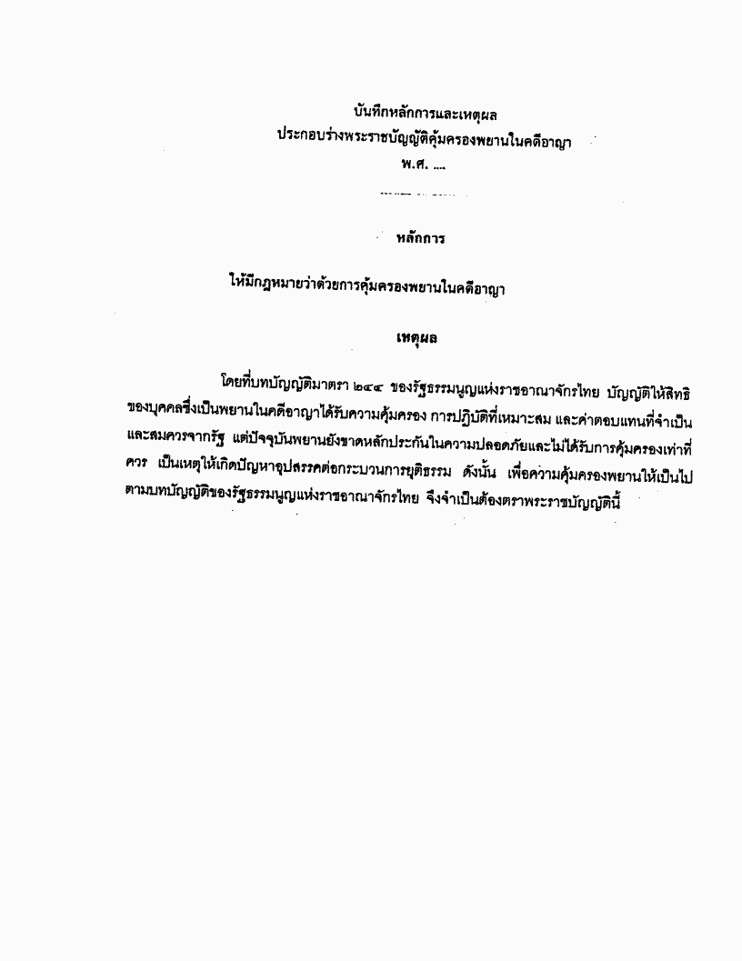 ชื่อเอกสาร :   ร่างพระราชบัญญัติคุ้มครองพยานบุคคลในคดีอาญา พ.ศ.....