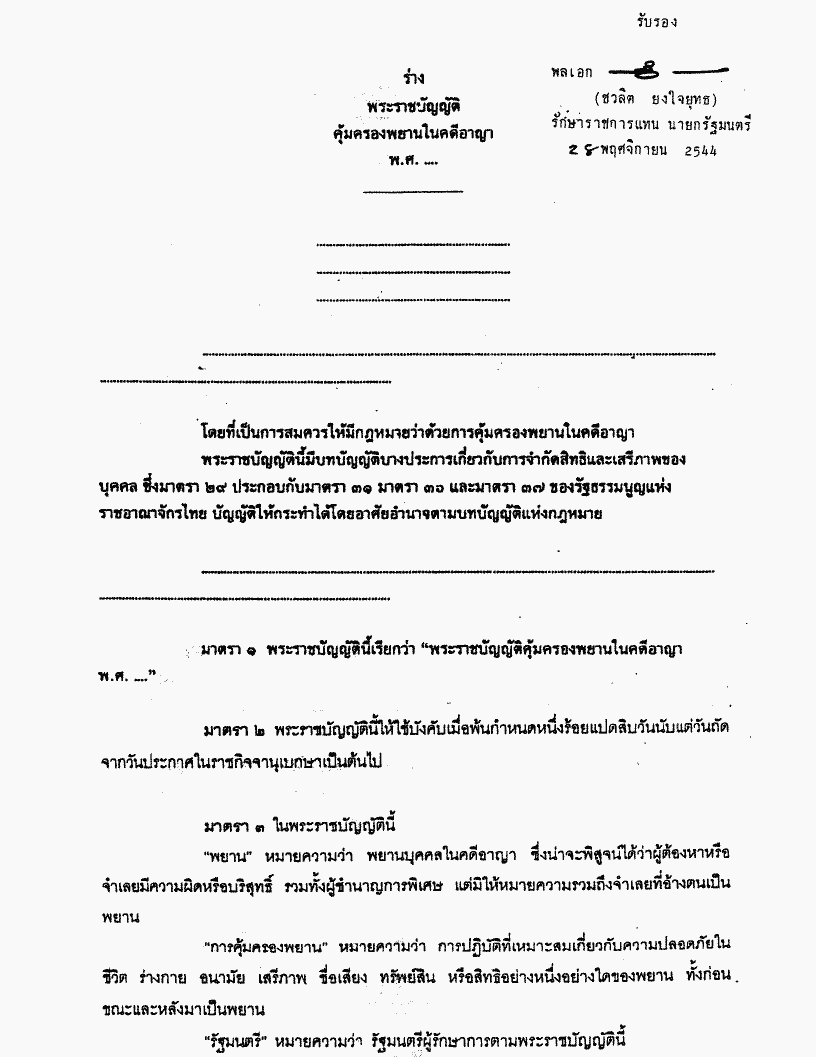 • ร่างพระราชบัญญัติคุ้มครองพยานบุคคลในคดีอาญา พ.ศ.....