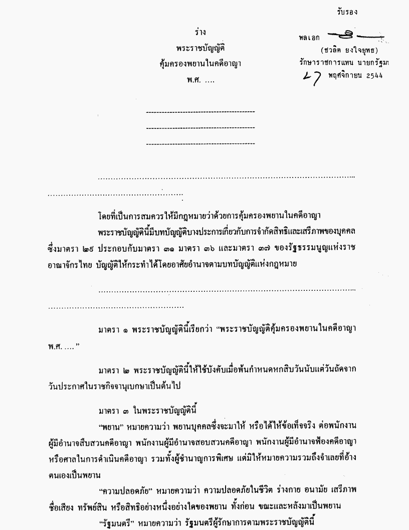 • ร่างพระราชบัญญัติคุ้มครองพยานบุคคลในคดีอาญา พ.ศ.....